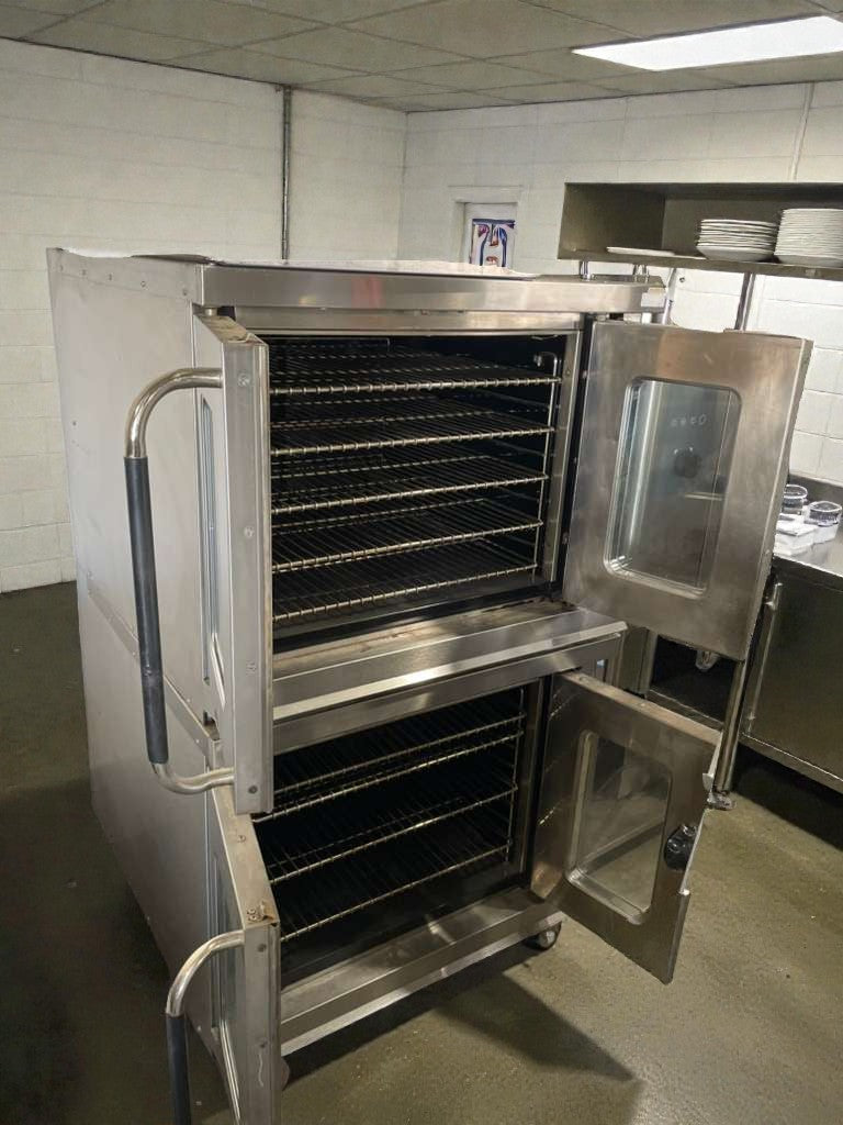 This unit has been professionally inspected and tested to confirm proper operation. Heating elements function correctly and ovens maintain consistent temperatures. Stainless steel exterior is clean with light cosmetic signs of prior commercial use only. Fully functional and ready for immediate commercial kitchen service.