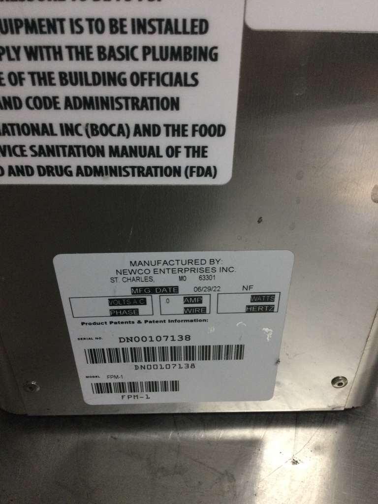 (Exact voltage and amperage not listed on data plate — standard commercial configuration)