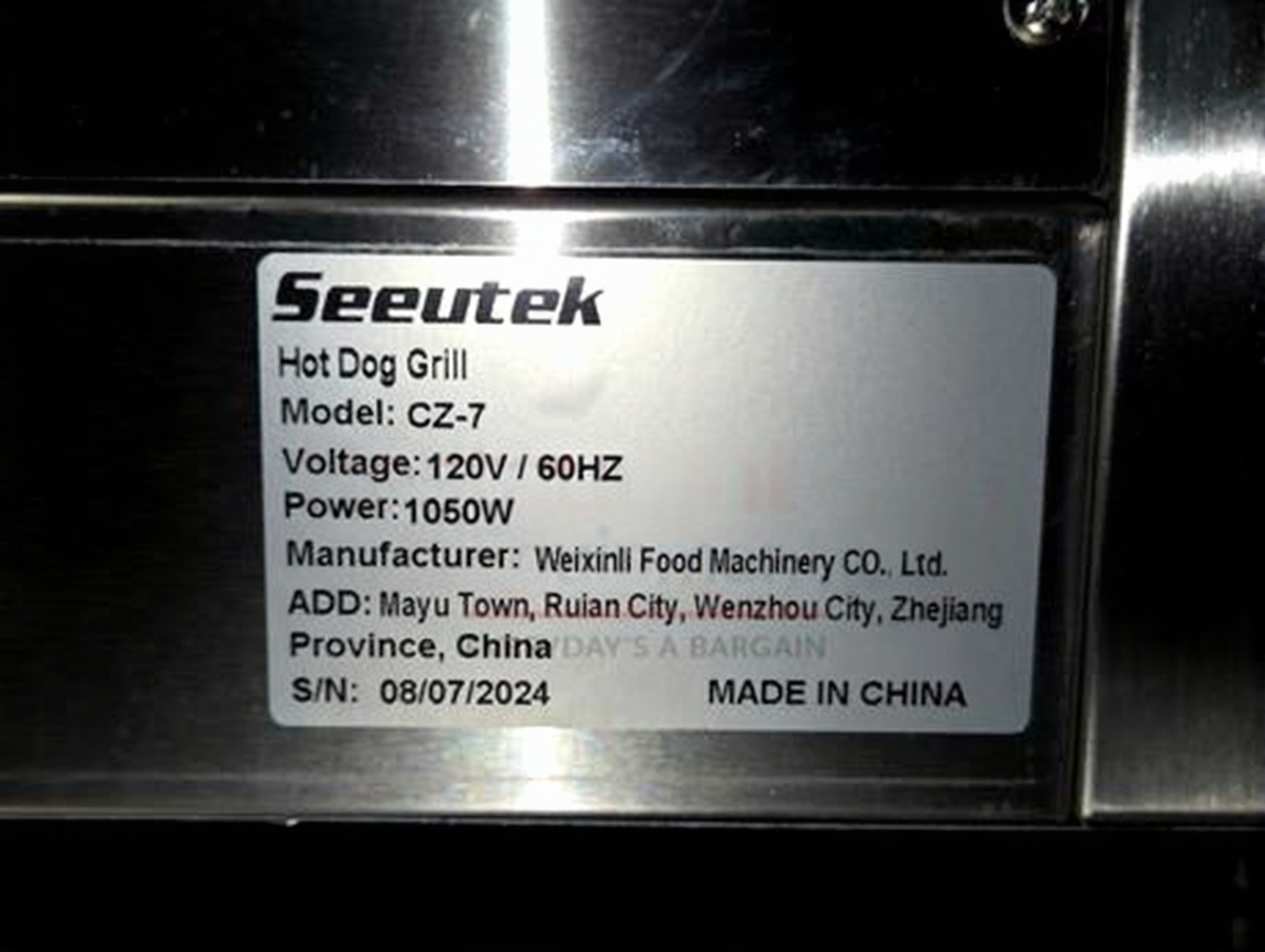 Pristine Condition – Seeutek Hot Dog Roller Grill – 7 Rollers / 24 Hot Dog Capacity – 120V – Fully Tested & Working