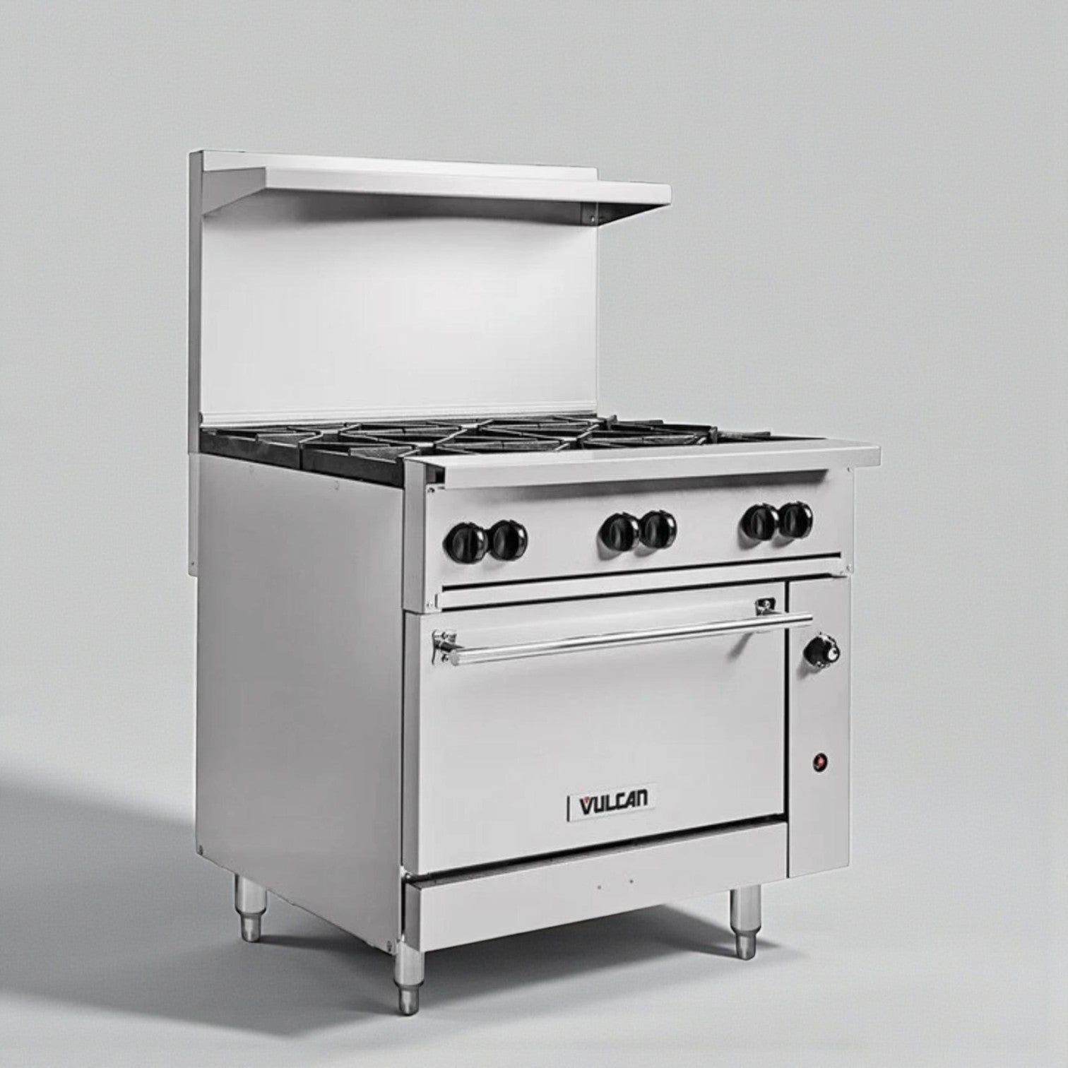 Known for durability and long service life, Vulcan ranges are widely used in restaurants, hotels, institutional kitchens, and production facilities. The stainless steel construction and simple mechanical controls ensure consistent performance and easy maintenance.